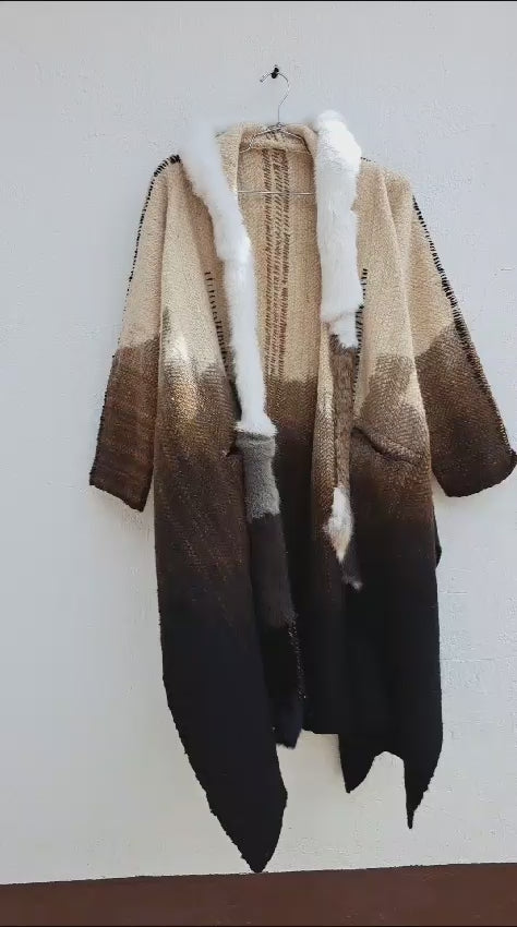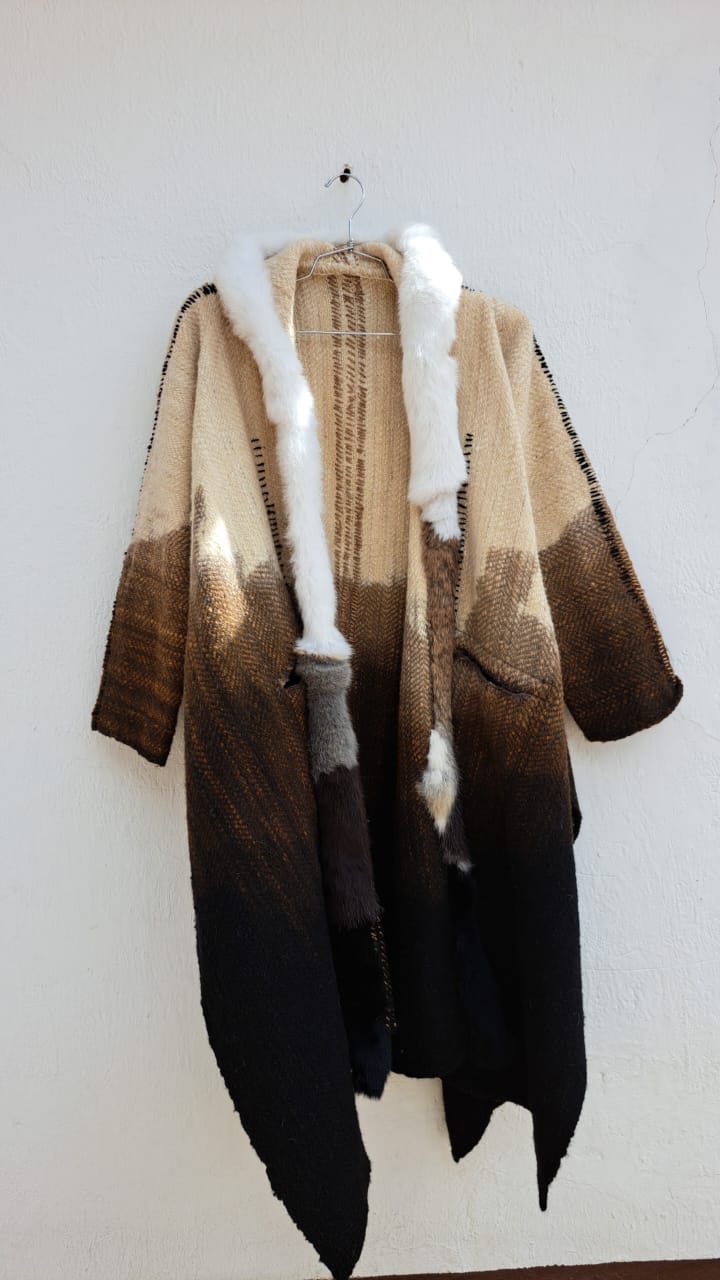 2 front pockets, hood and sleeves. Sustainable Rabbit Fur on the hood and front lapel.